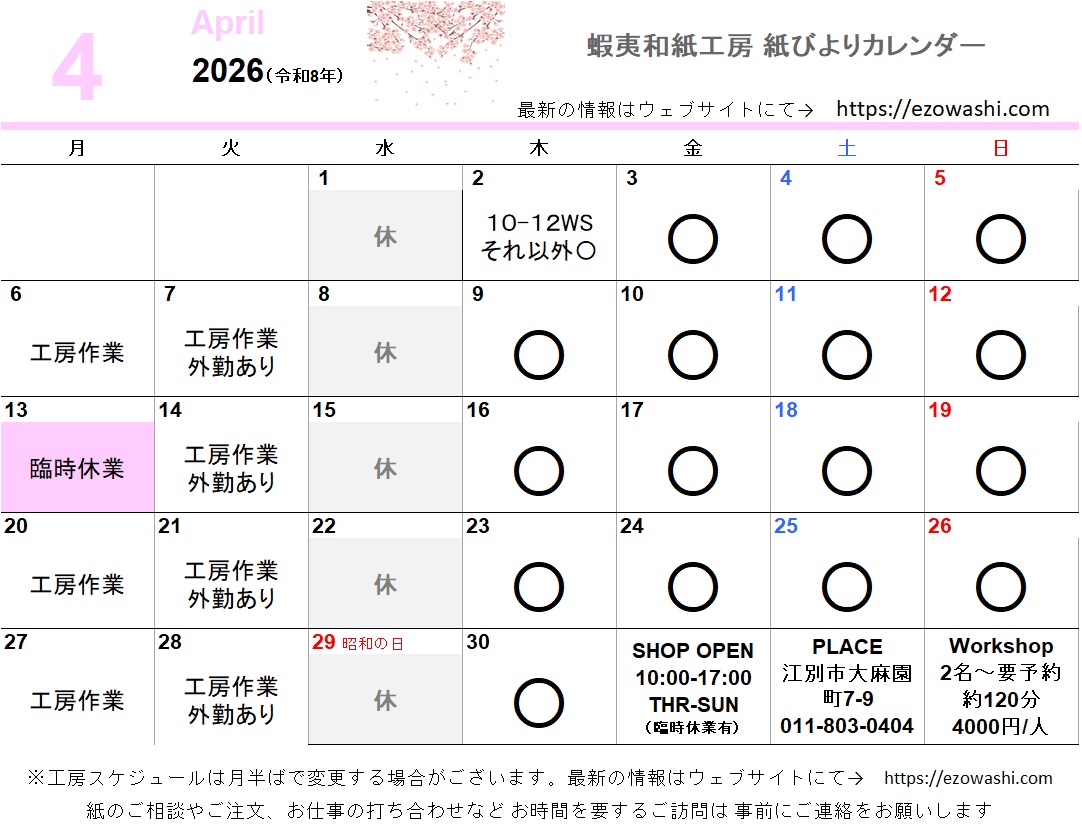 紙びよりカレンダー長い冬が終わり、ようやく北海道にも